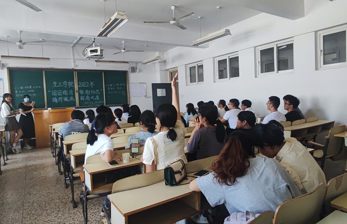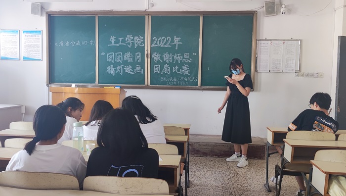 为营造大学生谐发展的校园氛围,加强当代大学生动手能力。9月10日下午,生工学院于教学楼A506举办2022年猜灯谜画团扇比赛,共有32名同学参加本次比赛。