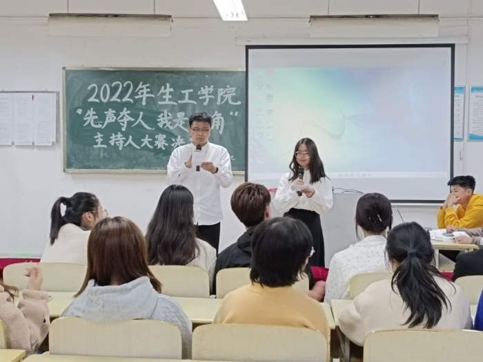 经过一个多星期的激烈比拼,主持人初赛已落下帷幕,有6名选手从上次比赛中脱颖而出,分别是李珍、钱灿琦、韦昊志、杨芷寒、余梓涵和朱忠奇。生工学院决定于11月5号晚在教学楼A505教室举办“先声夺人,我是主角”主持人大赛决赛活动。