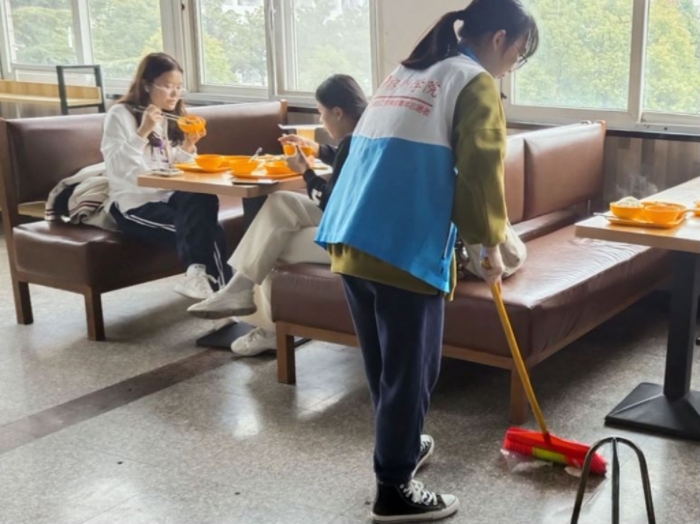 中午十二点,22名志愿者准时集结,到达指定地点进行签到,领取志愿者服并佩戴口罩。同学们在认真听完食堂工作人员的讲解之后在各组负责人的带领下分别前往一食堂的一楼和二楼,有序开展食堂清扫活动。在清扫食堂的过程中,同学们分工协作,相互配合,充分展现了当代大学生无私奉献,劳动光荣的青春风采。有的志愿者负责打扫食堂过道,不放过一个角落;有的志愿者负责擦洗桌子,保证不剩油污;还有一些志愿者在完成自己的工作后,也会去帮助其他志愿者,这体现了互帮互助的精神。此次活动结束后,同学们体会到了叔叔阿姨在食堂工作的辛劳,然后也向他们表达自己的由衷感谢。