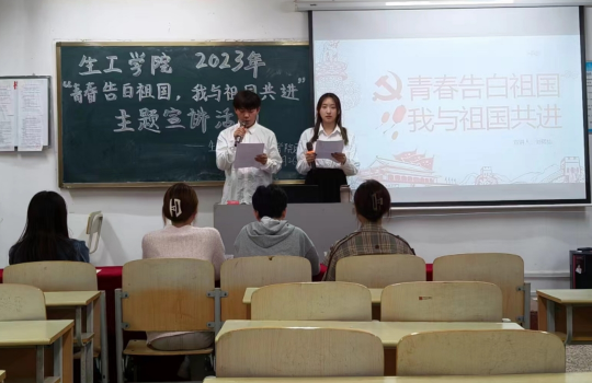 为庆祝中华人民共和国成立74周年,培育生工学院学子的爱党爱国情怀,特此我院在9月26日举办生物与食品工程学院2023年"青春青春告白祖国,我与祖国共进"主题教育宣讲活动。