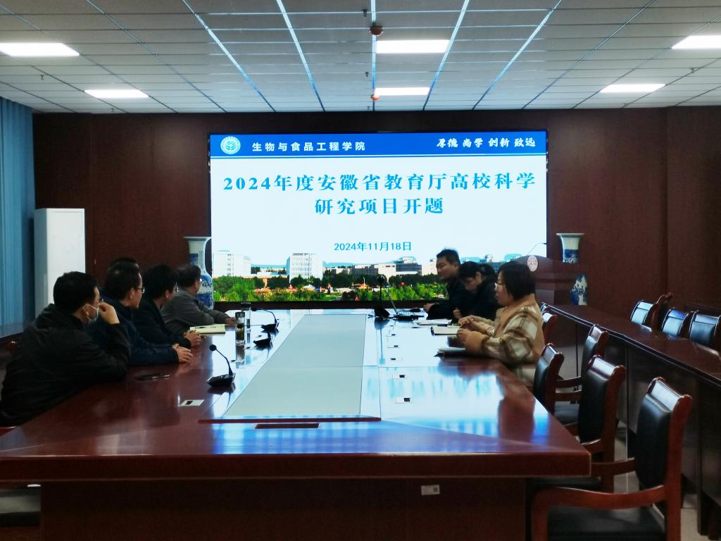 根据《安徽省教育厅关于组织编制2024年度高等学校科研计划的通知》(皖教秘科〔2024〕34号)要求及学校有关工作安排,为进一步推动2024年度安徽省教育厅高校科学研究项目的顺利实施,2024年11月18日下午在生工学院会议室成功举办2024年度安徽省教育厅高校科学研究项目开题报告会。会议邀请生工学院院长张兴桃教授、副院长(科研)翟科峰教授、刘小阳教授、徐礼生教授、陈志鸿教授作为评审专家,对2024年立项的3个安徽省教育厅高校科学研究重点项目进行开题评审,会议由张兴桃主持。