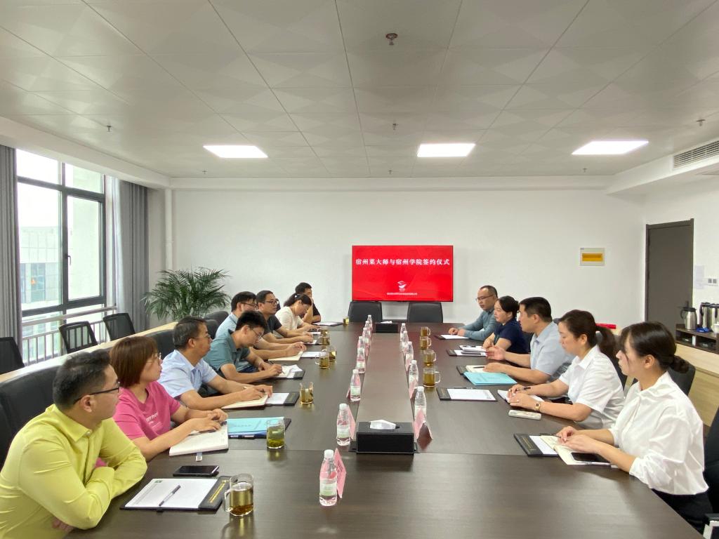 娄志丹就宿州菜大师的发展历程、产业规划布局、运营情况、人才需求等方面展开介绍。他表示希望双方今后可以在科技创新、咨询培训、实习实训、用工就业等方面展开深入的合作,共建校企合作平台,把企业的需求与高校的人才优势紧密结合,取长补短,加快产业转型升级,助力高质量发展。随后,校企双方就即将签署的产学研合作协议的内容进行了深入细致的商讨。
