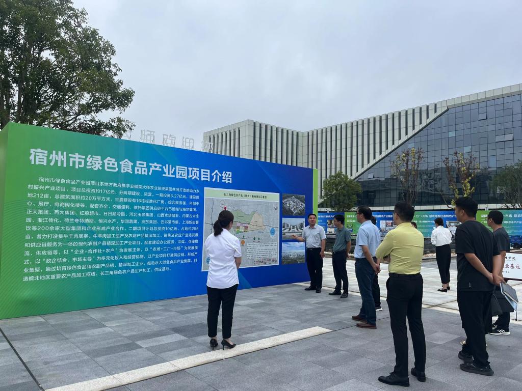 签约前,宿州菜大师负责人周洲向张院长一行分别介绍了宿州市绿色食品产业园项目、安徽菜大师农业控股集团和宿州菜大师农业科技发展有限公司的基本情况,并参观了菜大师展厅里菜大师供应链优质农副产品以及宿州特色绿色食品。