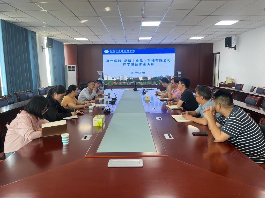 2024年9月3日下午,汉糖(安徽)食品科技有限公司总裁陆杰,总经理刘明皎,技术总监朱晓菲一行五人到生工学院洽谈食糖系列产品校企合作事宜。生工学院院长张兴桃,党委副书记(临时负责)刘超,副院长王海朝,副院长翟科峰,科研秘书姚沛琳,实习实训中心主任张东京,食品专业教师郭军博士、吴礼鹏博士等参加交流会。会议由张兴桃主持。