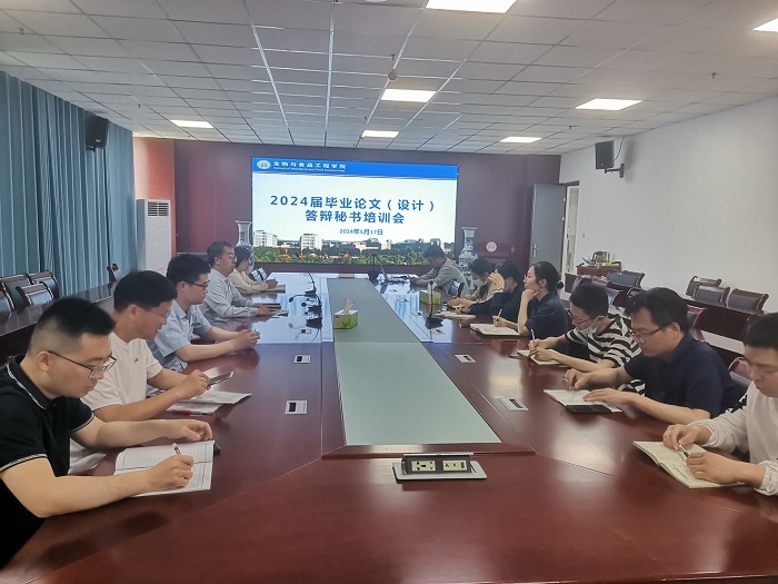 生物与食品工程学院高度重视本次毕业论文(设计)答辩工作,成立校企组成的答辩工作委员会,邀请新宇药业股份有限公司副总经理刘瑞华正高级工程师、宿州亿帆药业有限公司总经理唐英武副研究员等6位企业指导老师亲临现场参与答辩指导工作。5月15日召开了全体答辩组2024届本科毕业生论文(设计)答辩安排布置会,副院长王海潮对答辩前环节、答辩组安排、论文查重、论文评阅、论文答辩资格审查、答辩时间安排及有关注意事项等进行周密细致的布置,5月17对答辩组秘书进行培训,5月19日召开答辩委员会预备会,强调毕业论文(设计)答辩工作的重要性,确保答辩过程顺利进行。