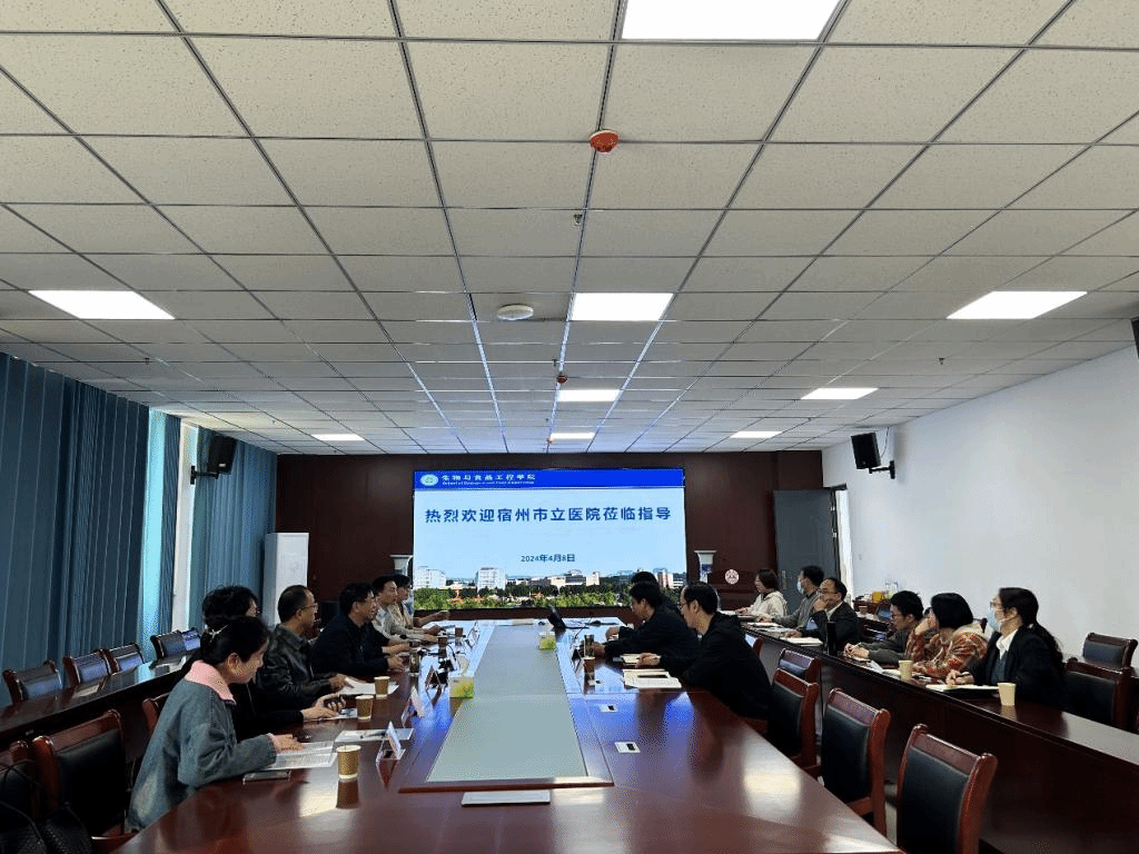 2024年4月8日下午,宿州市立医院党委书记钟平、科教科科长张雷等一行7人到生工学院开展科研合作交流。生工学院院长张兴桃、人事处副处长段鹏举、生工学院科研副院长翟科峰及相关研究方向的博士教师参加了此次座谈会。