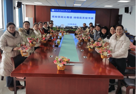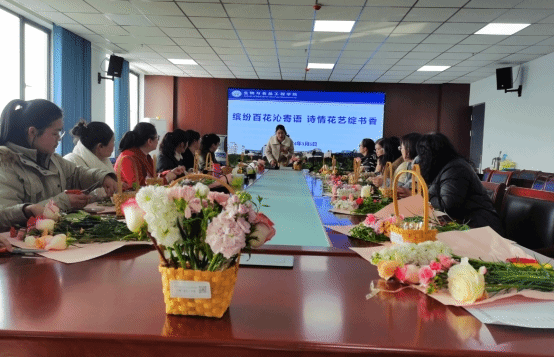 在2024年“三八”国际妇女节到来之际,为了更好地丰富女教职工业余生活,激发女教职工的工作热情,增强女教职工的拼搏精神和集体凝聚力,营造祥和、欢乐、喜庆的节日氛围,生物与食品工程学院分工会于2024年3月6日下午2:40组织女教职工“缤纷百花沁寄语、诗情花意绽书香”插花活动。