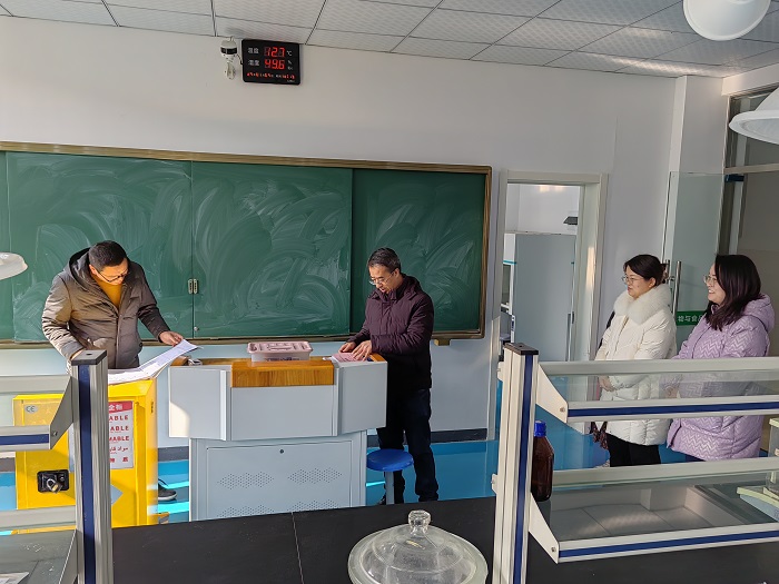 会后王海潮带领实验室管理人员检查了各实验(实训)室的日常安全管理记录、危险化学品使用记录及各实验室水电安全情况等。