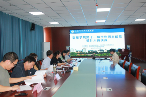 10月23日,宿州学院第十一届生物标本创意设计大赛在生物与食品工程学院会议室成功举行。本次大赛由校教务处和团委主办,生物与食品工程学院团委承办。生工学院院长张兴桃、副院长王海潮、院党委副书记李娜、以及生工学院教师李红侠、李秀丽、钱玉梅、陈军、张东京、吴长昊应邀担任本次比赛的评委。