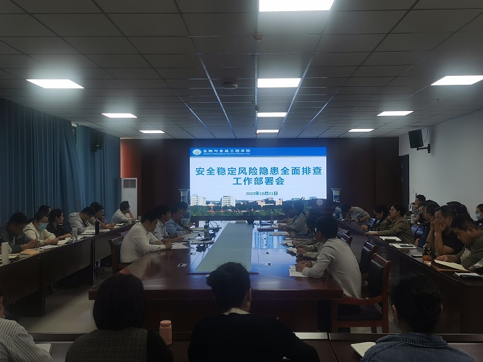 根据学校安全工作会议精神和相关工作部署,为切实做好实验(实训)室安全稳定工作,进一步提高师生安全意识,2023年10月11日下午,生物与食品工程学院在会议室1105召开安全稳定风险隐患全面排查工作部署会。生工学院院长张兴桃以及全体教师参加了会议。会议由张兴桃主持。