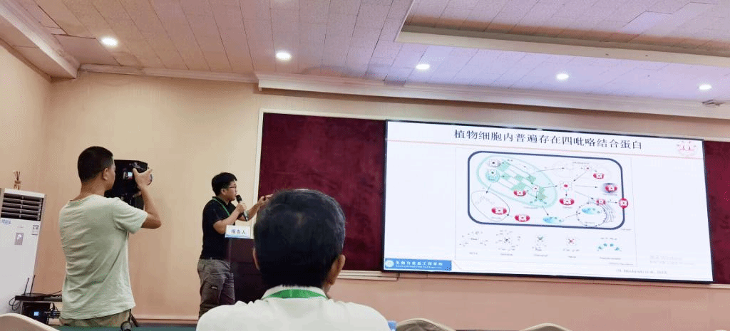 张兴桃主持了植物多样性及资源保护利用的论坛。会议期间,张兴桃介绍了宿州学院生物与食品工程学院在植物科学领域的最新研究进展,还与专家就合作研究项目进行了深入的洽谈,探讨了共同关心的科研问题。周宇博士作了题为“血红素代谢在根瘤高效固氮中的生物学功能”大会报告。他的研究聚焦于植物根瘤共生系统中的关键生物学过程,特别是血红素代谢如何影响固氮效率。周宇博士的研究不仅深化了对植物生态学的理解,还为农业生产和可持续发展提供了潜在的创新路径。