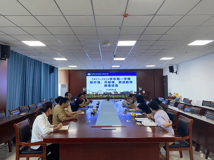 根据学校教学工作安排和《宿州学院教学工作检查制度》(校评字〔2019〕6号)、《关于开展2023—2024学年第一学期开学教学巡视工作的通知》,生物与食品工程学院高度重视,9月1日下午,生工学院院长张兴桃、教学督导委员会成员、教研室主任组织对新开课、开新课、新引进教师教案进行检查,并对新引进教师的课前进行指导,指导老师和新开课、开新课、新进教师参加。