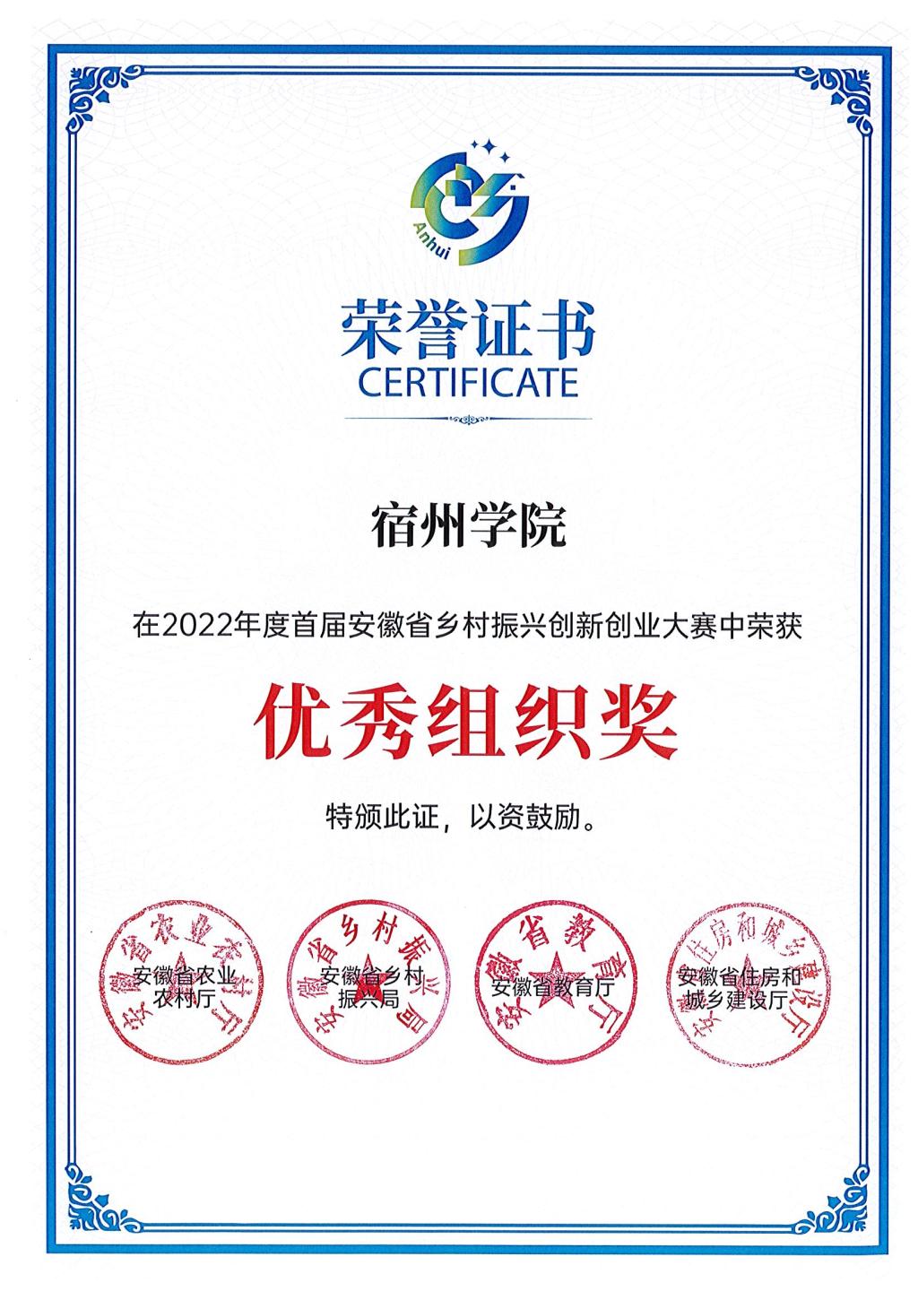 大赛以“乡村振兴 你我同行”为主题,旨在加快推进乡村人才振兴和创业安徽行动,引导广大大学生和社会力量做推动乡村振兴宣传者、实践者和参与者,强化乡村建设人才与技术支撑。本次大赛共有来自省内外100多所高校7200多支项目团队报名参赛。经过校赛初赛选拔、推荐省赛复评、省赛决赛评审等环节,决定最终获奖名单。我校在本次赛事中荣获一等奖3项,二等奖11项,三等奖14项,优秀奖27项,王士权老师荣获优秀指导教师,宿州学院荣获优秀组织单位。