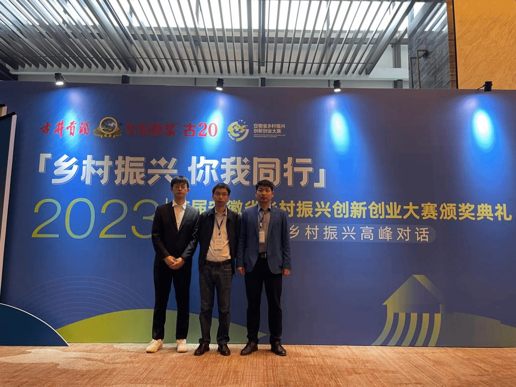 近日,由安徽省农业农村厅、安徽省乡村振兴局、安徽省教育厅、安徽省住房和城乡建设厅等单位联合主办的首届安徽省乡村振兴创新创业大赛颁奖典礼在合肥举行,我校生工学院院长张兴桃、分团委书记吴长昊及学生代表受邀参加。