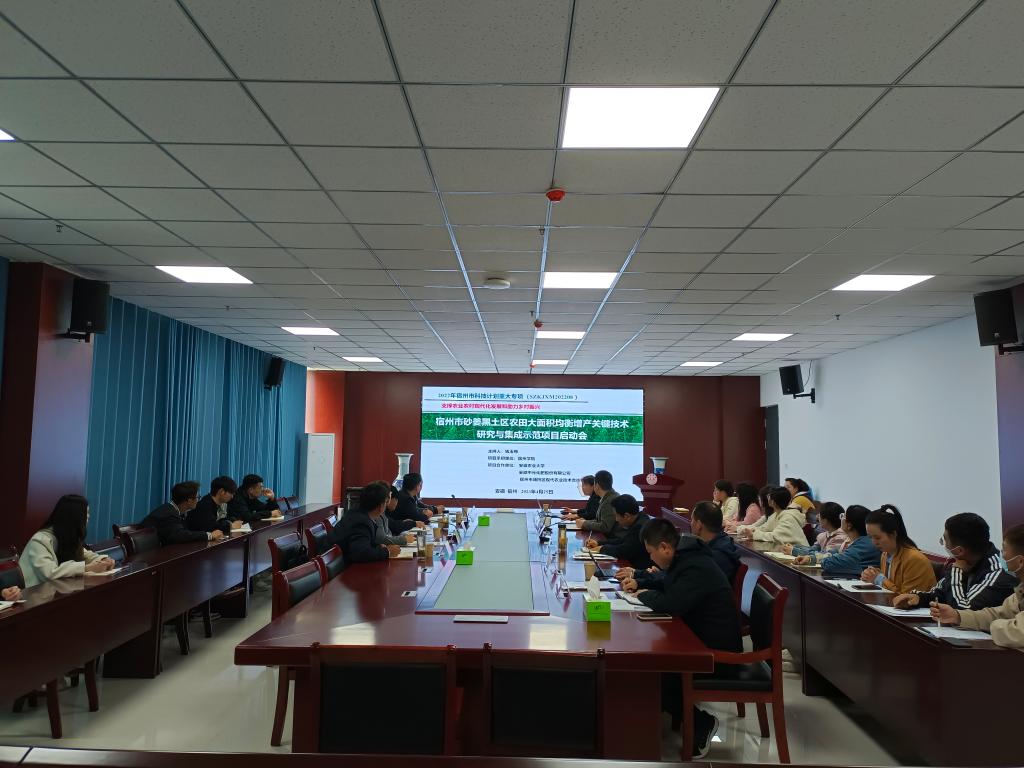 2023年4月25日下午,生物与食品工程学院在实训楼A1105召开“宿州市砂姜黑土区农田大面积均衡增产关键技术研究与集成示范(SZKJXM202208)”项目启动会暨研讨会。项目承担单位宿州学院生物与食品工程学院院长张兴桃、科研副院长翟科峰、项目主持人钱玉梅博士,项目合作单位安徽农业大学王擎运博士、安徽中元化肥股份有限公司总工程师刘统华、宿州市埇桥区现代农业技术合作推广服务中心副站长丁文金博士参加了会议。会议邀请到安徽农业大学周桃华副教授,安徽华成种业农科院闫启云院长,宿州市农科院苗青松副院长,宿州市农科院小麦一所张玉坤所长,宿州市埇桥区农业农村局土肥站孙海龙站长作为专家出席会议。