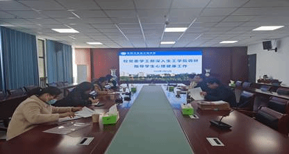 3月28日上午,校党委学工部部长李月云、校心理健康教育中心詹春燕、张爱平、张梦琪老师莅临我院调研指导学生心理健康教育工作。生工学院党委书记赵亮、院长张兴桃、党委副书记李娜及全体辅导员参加了会议。