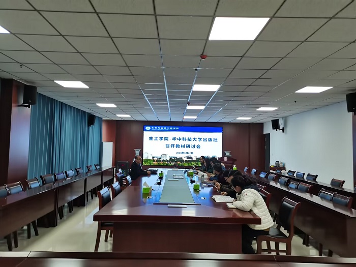 2023年3月22日,在生物与食品工程学院会议室,生工学院与与来自华中科技大学出版的副编审王新华就教材出版研讨会。院长张兴桃、副院长王海潮、教研室主任李秀丽及多位教师参加本次研讨会。
