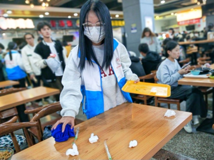 中午十二点,22名志愿者准时集结,到达指定地点进行签到,领取志愿者服并佩戴口罩。同学们在认真听完食堂工作人员的讲解之后在各组负责人的带领下分别前往一食堂的一楼和二楼,有序开展食堂清扫活动。在清扫食堂的过程中,同学们分工协作,相互配合,充分展现了当代大学生无私奉献,劳动光荣的青春风采。有的志愿者负责打扫食堂过道,不放过一个角落;有的志愿者负责擦洗桌子,保证不剩油污;还有一些志愿者在完成自己的工作后,也会去帮助其他志愿者,这体现了互帮互助的精神。此次活动结束后,同学们体会到了叔叔阿姨在食堂工作的辛劳,然后也向他们表达自己的由衷感谢。