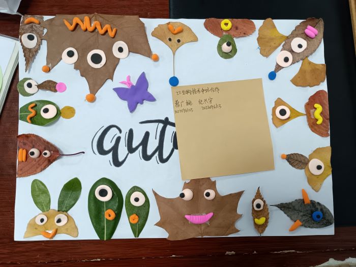 在这次活动中,同学们搜集了大小不同、形态各异的树叶,大胆尝试不同的画面设计,适当裁剪树叶,让落叶变成有生命的小动物。在这些作品中,我们身临其境,仿佛置身于绵延的枫树林中,枫叶像一团团正在燃烧的火焰,灵动而让人陶醉。有的作品精致,有的作品简单,但它们都蕴含着秋天的味道。经过最终评定,21生物技术中外合办周少婷、21生物技术2班蔡旭玉、21食品质量与安全陈雪婷荣获一等奖,22食品质量与安全方琪、22生物技术中外合办蔡广婉等荣获二等奖,22生物技术中外合办李敬业、21生物技术1班王雨凤等荣获三等奖。