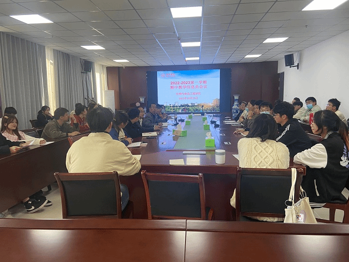 10月19日下午,生物与食品工程学院在实训楼A1105会议室召开了2022-2023学年第一学期期中教学信息员会议。会议由生物与食品工程学院教学督导成员、副院长王海潮主持,参会人员有院督导组主任蓸稳根教授、成员钱玉梅副教授、教学秘书、教务员、各班级信息员及班长等五十余人。