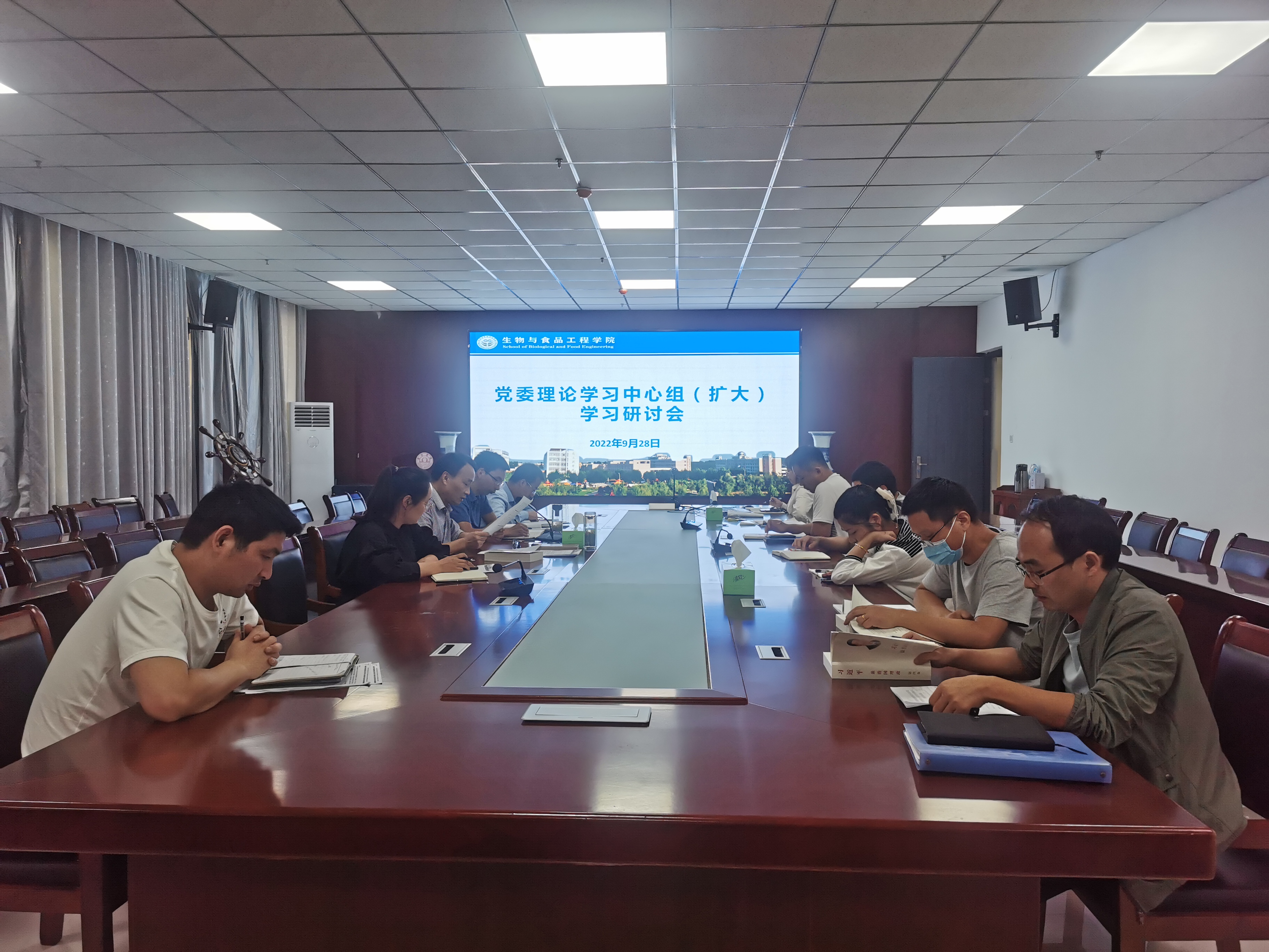 9月28日下午,生工学院在学院会议室召开党委理论学习中心组(扩大)学习研讨会,学院党委成员、支部书记、科级干部参加会议。会议由党委书记赵亮主持。