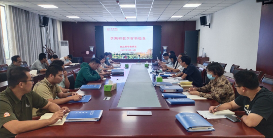 9月14日下午,生物与食品工程学院食品科学教研室、生物技术与药学教研室在实训楼A1105会议室开展《2022-2023学年第一学期期初教学材料检查》活动。院党委副书记、院长张兴桃、副院长王海潮、食品教研室主任陈军、生物技术与药学教研室主任李秀丽及各任课教师参加了本次活动。