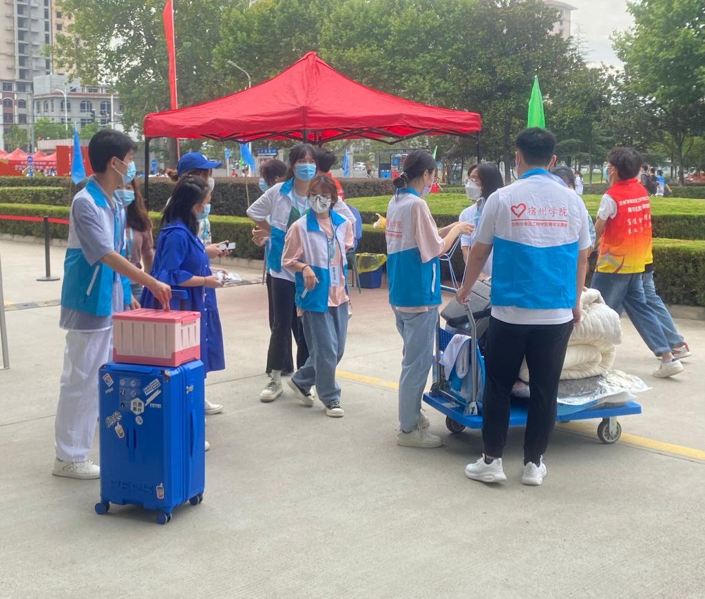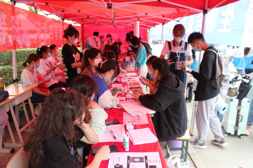 9月4日,生工学院于宿州学院东区学海路开展迎新工作。生工学院党委书记赵亮、院长张兴桃、副院长王海嘲、副院长翟科峰、副书记李娜、学生事务科科长甘守伟、分团委书记吴长昊及2022级各班辅导员亲临现场指导工作,学生会各部门负责人与迎新志愿者们在新生接待处等候,带领新生顺利报道。