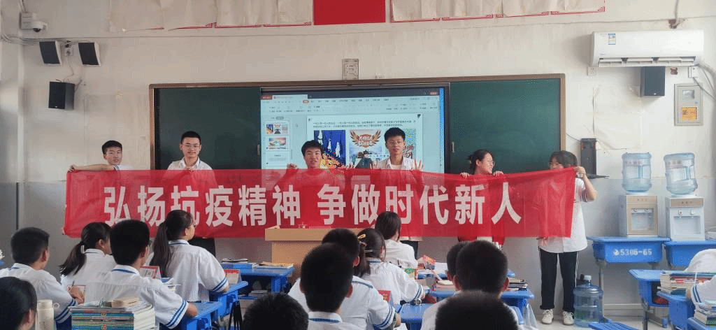 2022年6月16日至6月22日,生物与食品工程学院暑期社会实践团队前往安徽省宿州市萧县鹏程中学开展实践活动。开展抗“疫”故事在校园宣讲会,主要讲述抗疫精神关于当下疫情现状,如何做好防疫工作。横幅标语展示“弘扬抗疫精神,争做时代新人”的主题教育内容,弘扬抗疫精神用永不褪色、永放光芒的奉献精神,激励和哺育新一代青少年。