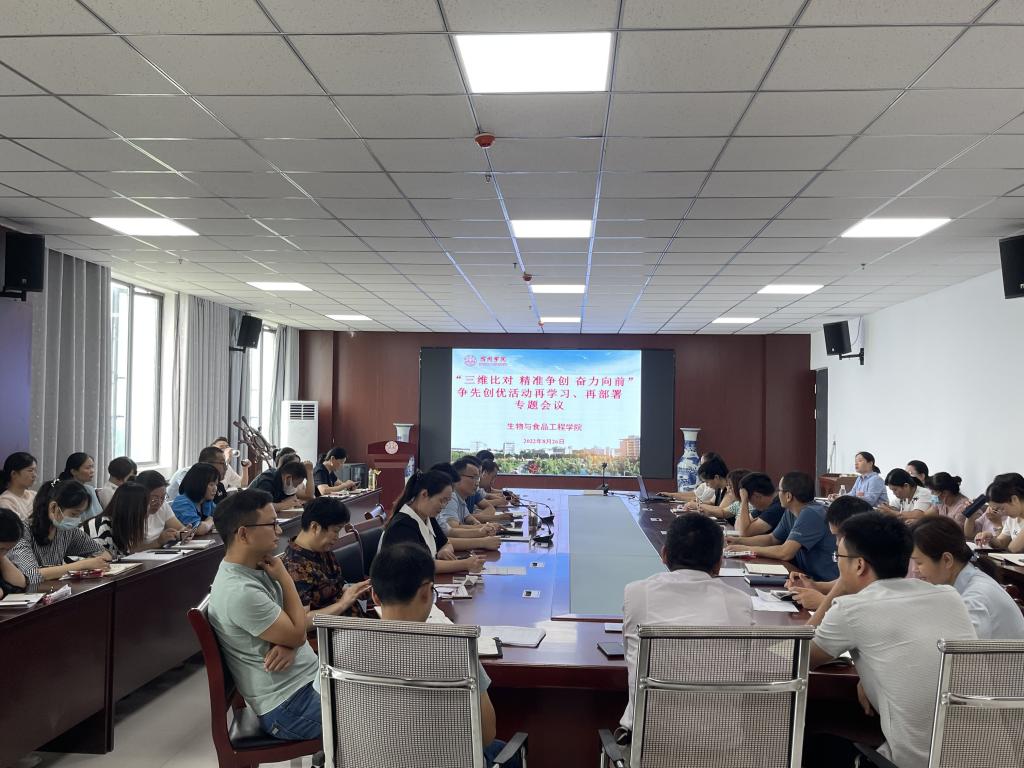 按照学校关于开展“三维比对、精准争创、奋力向前”争先创优活动的实施方案要求,8月26日上午,生物与食品工程学院召开争活动专题学习推进会,学院全体教职工参加会议,学院党委书记赵亮主持会议。