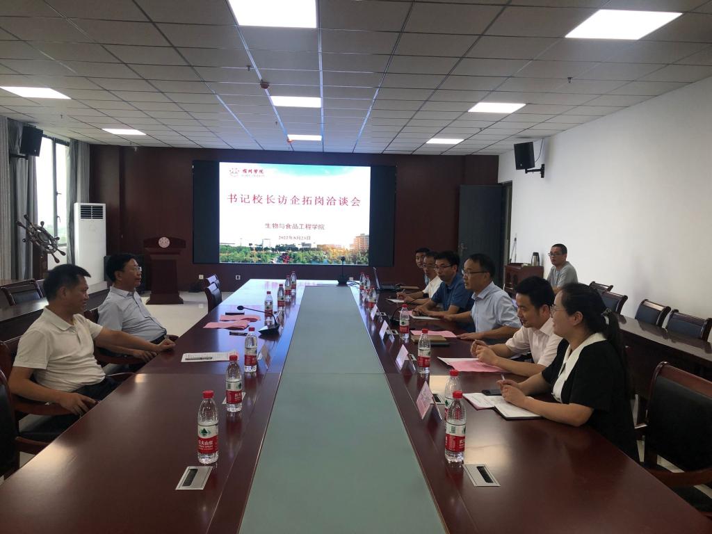 为深入落实党中央、国务院和省委、省政府“稳就业”“保就业”决策部署,深入落实就业工作“一把手”工程和“高校书记校长访企拓岗促就业专项行动”,8月23日,宿州学院生物与食品工程学院采用线上线下相结合的形式召开书记校长访企拓岗专题会议。我校党委委员、副院长杨维志、招生就业处处长杨刚、生工学院领导班子成员、科级干部参加会议。南京诺唯赞生物科技有限公司、江苏金斯瑞生物科技有限公司、华测检测技术有限公司、合肥统一企业有限公司等4家知名企业领导、代表应邀参会。会议由生物与食品工程学院党委书记赵亮主持。