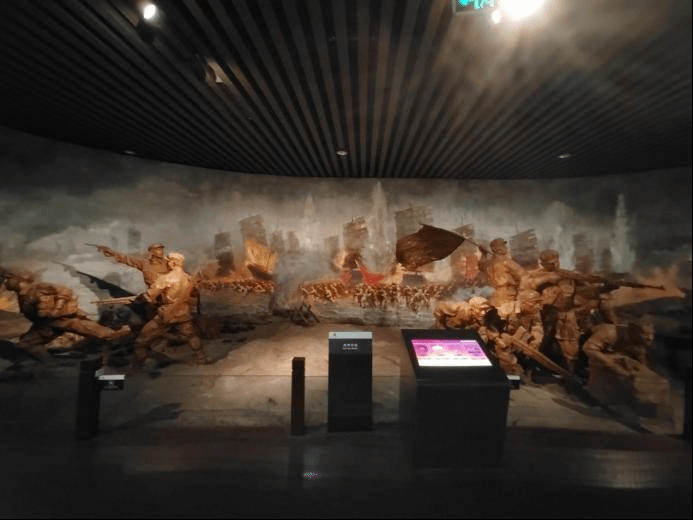 一进入馆内,一幅巨大的浮雕展现在我们眼前,栩棚如生地刻画着战士们奋勇渡江的情景,他们靠顽强的意志和不怕牺牲的精神战胜了敌人,英勇事迹让我们肃然起敬。那时我们热血沸腾,仿佛自己也成为了其中的一名战士,向前冲锋杀敌,勇往直前。