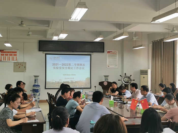 根据学校安全工作会议精神和工作部署,为切实做好生物与食品工程学院实验室的安全稳定工作,进一步提高师生安全意识,6月22日,生物与食品工程学院在A206会议室召开实验室安全稳定专题工作会议及实验室安全教育培训活动会。参加会议的有党委书记赵亮及全体教师,会议由院长张兴桃主持。会上,张兴桃传达了学校安全稳定工作会议精神,要求与会人员对当前疫情防控、实验室安全、消防安全等工作进行全面的排查和整顿,要求各实验室负责人及使用人深入排查各实验室安全隐患,重点检查危化品易燃易爆品安全分类存储、水电安全、假期教师实验的安全防护等。