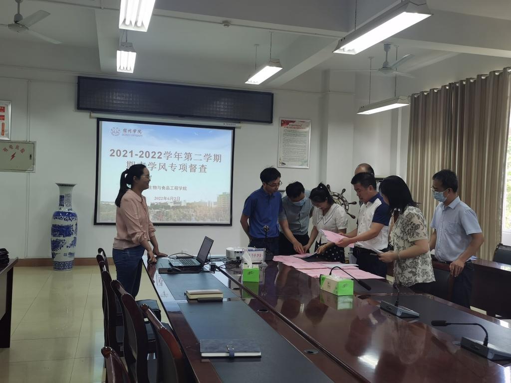 学风督查组成员到教学楼我院上课的班级进行现场督查,也给我院提出了学风建设工作开展的指导意见。认真细致查看了我院开展学风建设工作支撑材料,王处长充分肯定了我院学风建设工作。院领导详细介绍了我院开展的一系列学风建设活动,强调生工学院一直以来重视学风工作建设,在责任班级门口张贴学风督查卡对各班级上课情况每周汇报和整改,尤其是在2021届毕业生考研方面71位同学考取研究生,占学院毕业班总人数的24.91%创学院历史新高。