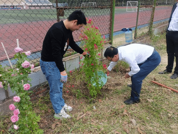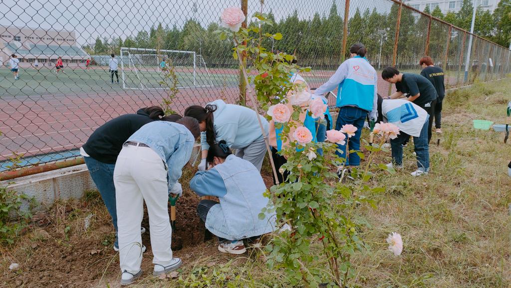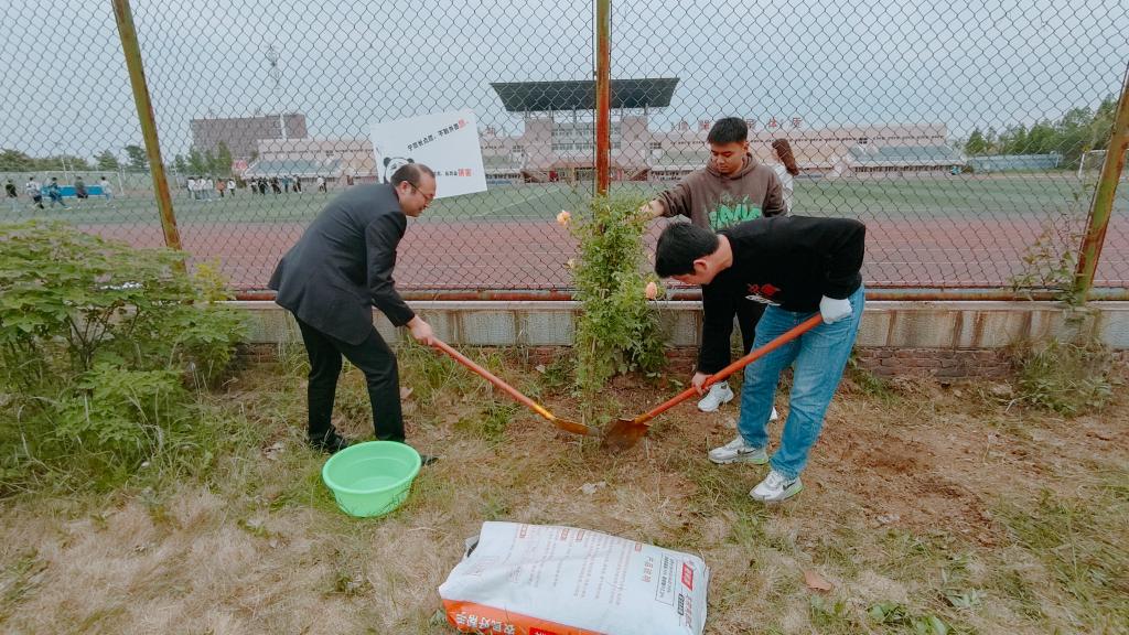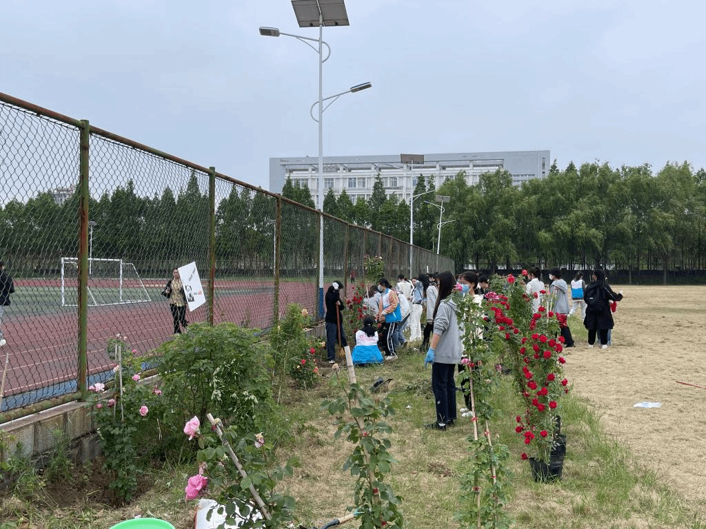 在宿州学院东校区田径场旁边标枪场地种植现场,师生们不怕脏、不怕累,移苗、挖坑、浇水、施肥、种植,热情高涨、干劲十足。经过近三个小时奋战,田径场围墙两侧全部种上了爬藤月季,既美化了校园环境,又使学生在养成良好的劳动习惯的同时学习勤俭奋斗、创新、奉献的劳动精神。