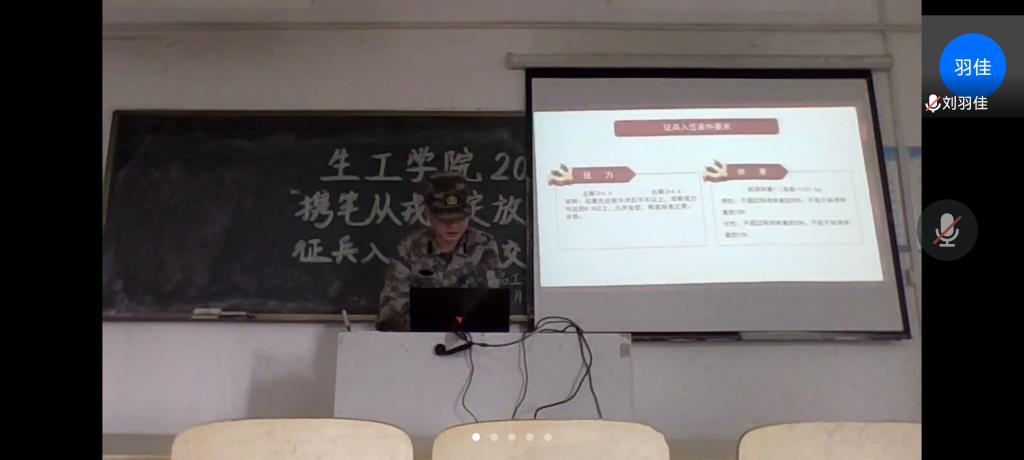为了使生工学子深入了解征兵的意义及相关优惠政策,充分调毕业班学生应征报名的积极性。生工学院在2022年4月23日下午4点在腾讯视频线上成功举办2022年“携笔从戎,绽放青春”征兵入伍讲座,,生物与食品工程学院有征兵意向的学生参加会议