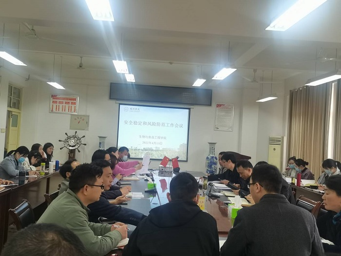 根据省教育厅和学校相关工作要求,为做好安全稳定和风险防范管理工作。4月13日下午,生物与食品工程学院在实验楼会议室召开安全稳定和风险防范工作会议专题会议。生工学院党委书记赵亮、副院长(教学)王海潮、副院长(科研)翟科峰、党委副书记李娜以及全体教师参加了会议。会议由院长张兴桃主持。
