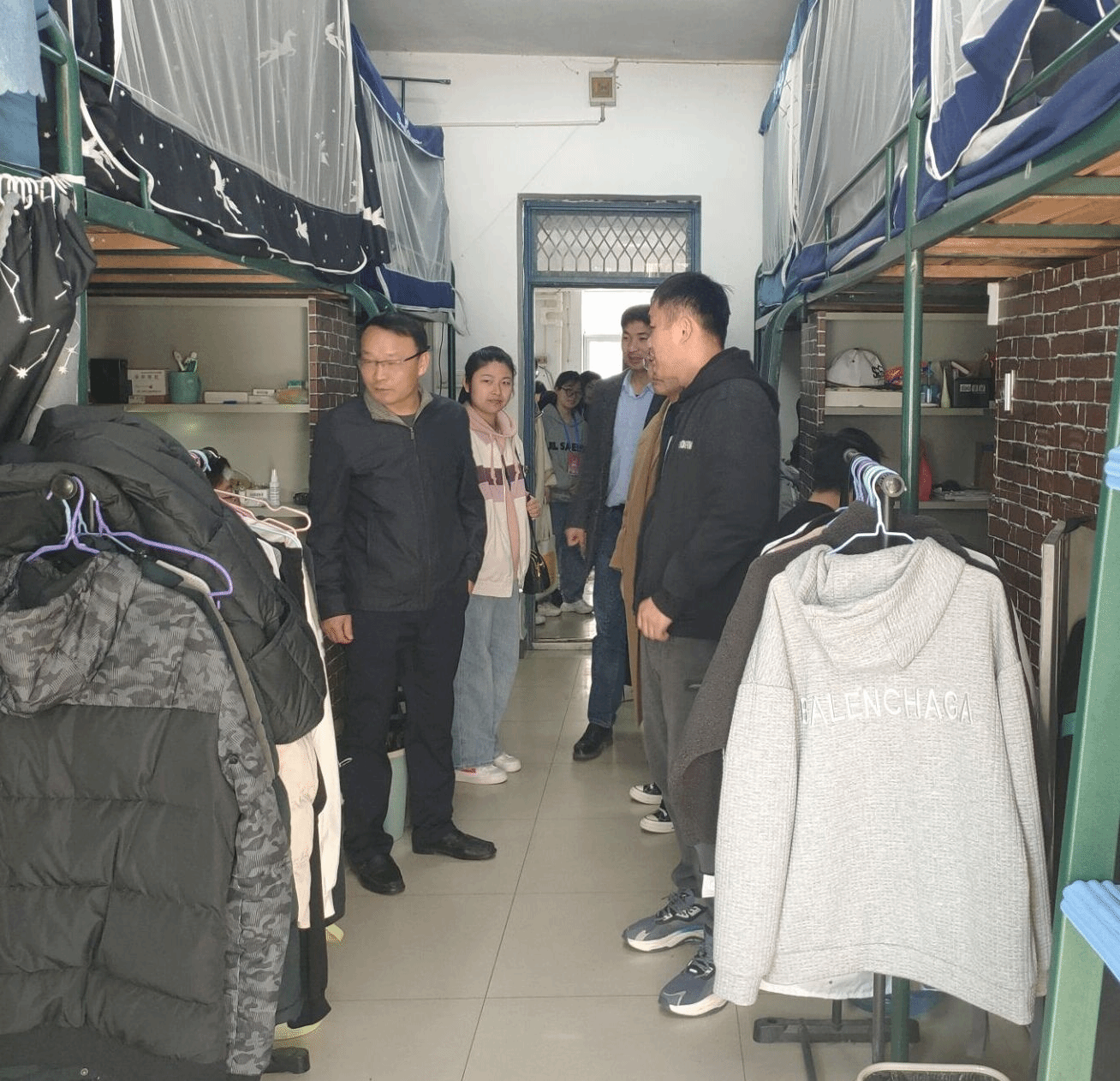 在走访过程中,实地了解目前学生学习生活情况,嘱咐各宿舍在疫情防控、人身安全、个人财产、卫生健康、内务整理等各方面应注意的问题,鼓励同学们多参加体育锻炼。争取在运动会在为学院争夺荣誉。同时,要求同学们在疫情严峻的的背景下要知法、懂法,更要积极做好防护措施,宿舍勤通风,做好个人卫生。