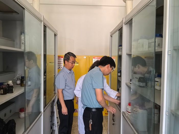 检查组对各实验室的危险化学品使用记录、大型设备安全、水电、门窗、消防等安全隐患对实验室进行逐一排查,重点对容易存在安全隐患的地方进行检查,通过此次检查发现,实验室整体运行良好,但是个别实验室存在卫生打扫不彻底和化学品管理不规范等问题。对检查中发现的不足,通知负责人按照要求及时进行整改。