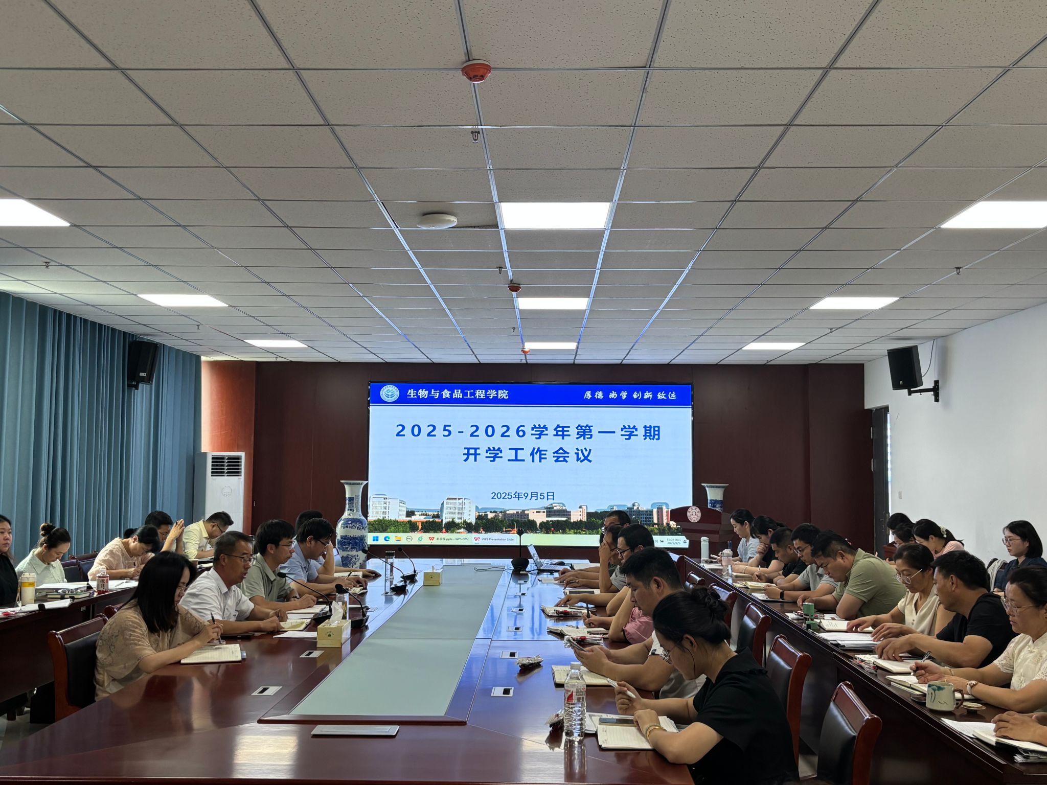 会上张兴桃首先对生工学院2025年暑期工作进行总结;对开学教学工作、科研工作、毕业论文、毕业实习等工作进行安排;同时要求教务科和教研室做好开学后的补缓考和学业预警等工作任务。最后强调新学期开始学院每位教师务必做好教学相关准备工作,高质量完成教学科研工作,确保课堂教学质量的不断提升。