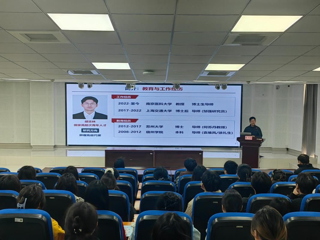 胡志林教授以聚焦肿瘤微环境树突状细胞代谢调控机制为题对我院师生开展学术讲座。讲座中胡教授不仅向师生们介绍了研究的课题,并且讲述了自己从本科到博士再到高校科研岗位的工作成长历程。他鼓励同学们在本科阶段要利用好学院提供的良好平台,深耕自身,在扎实学习的同时拓宽学术视野,全面提升综合能力。