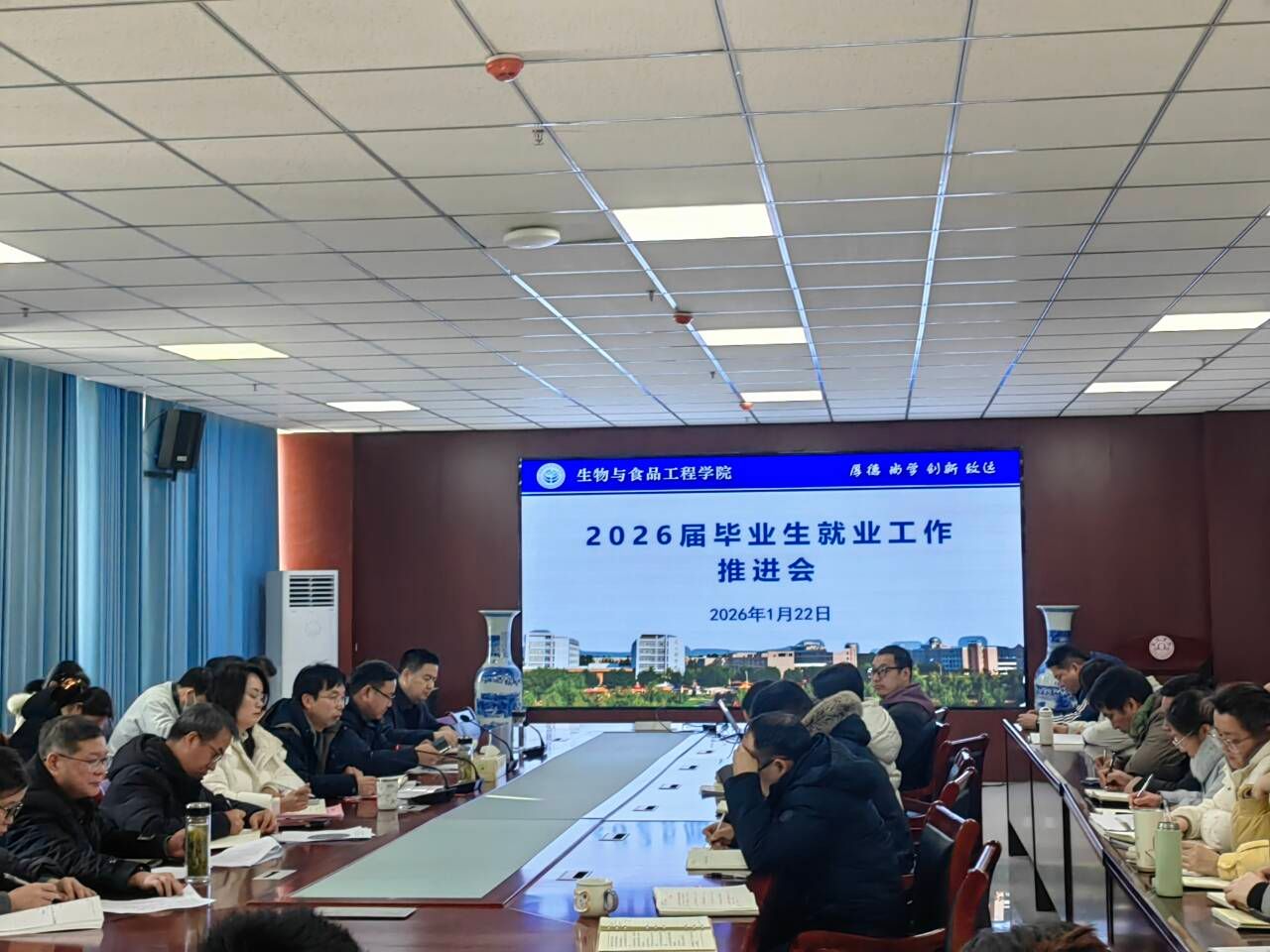 2026年1月22日,为扎实做好寒假期间毕业生就业服务工作,生物与食品工程学院组织召开2026届毕业生就业工作推进会,对寒假期间就业工作进行部署。
