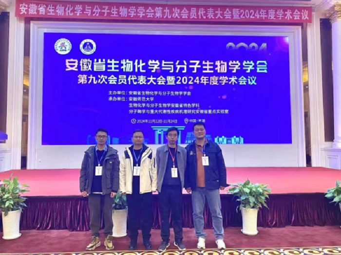 为促进安徽省生物化学与分子生物学领域专家的交流与合作,安徽省生物化学与分子生物学学会第九次会员代表大会暨2024年度学术会议于11月22日-24日在芜湖市举办。我校生物与食品工程学院张兴桃教授,赵文龙、彭磊、叶亚熙博士等一行参加此次学术会议。