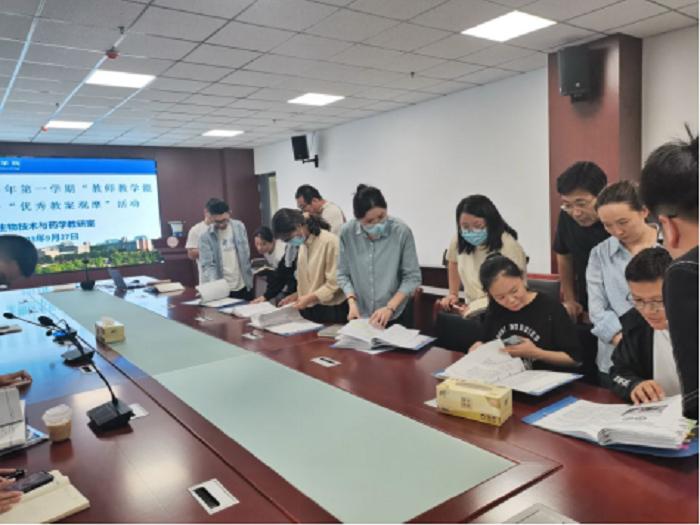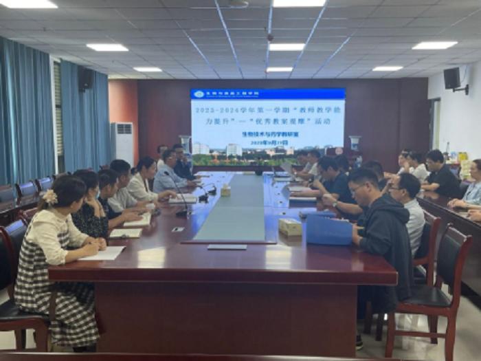 为了提升青年教师教学能力,不断提高教学质量,按照宿州学院《关于开展2023-2024学年度第一学期“教师教学能力提升”活动的通知》(教务处发〔2023〕60号)和《关于开展2023年宿州学院“教案评比”“优秀教案观摩”活动的通知(教务处〔2023〕76号)》要求,2023年9月27日下午,生物与食品工程学院开展了2023-2024学年度第一学期“教师教学能力提升”--“优秀教案观摩”活动,参加人员有院长张兴桃、学院督导委员会成员、食品科学教研室主任、生物技术与药学教研室主任以及近三年新进青年教师,活动由副院长王海潮主持。