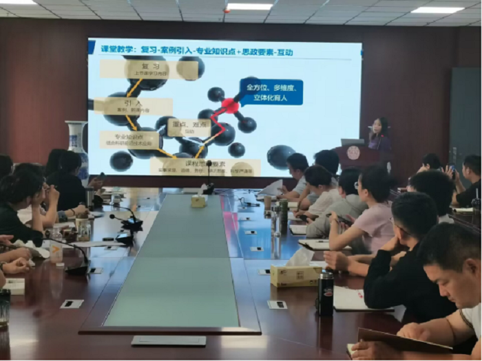 生工学院课程思政教学竞赛获奖教师及省级课程思政示范课项目负责人王静、单玲玲、蒋变玲等老师从各自的角度分享了课程思政元素如何融入《药理学》《药物分析》《食品营养与卫生》等课程。各位老师深度挖掘课程思政元素,以课程体系设置、课程大纲修订、教材编审选用、典型案例分析、教案课件设计为抓手,将课程思政要求细化到每门课程的具体教学计划中,切实推动思想政治教育、专业教育和实践教育深度融合,在潜移默化中激发学生的学习热情和爱国情怀,取得了良好的教学示范效果。