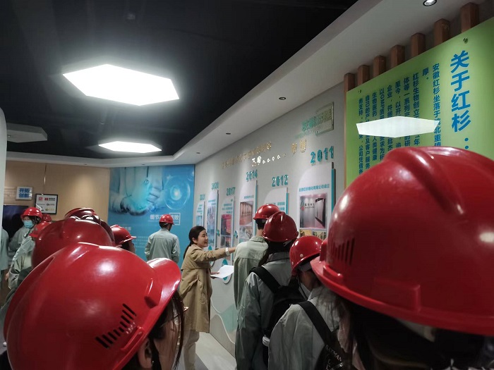 安徽红杉生物医药科技有限公司成立于2015年8月,位于安徽省宿州市经济技术开发区金江五路599号,是一家专业从事非天然氨基酸研发、生产及销售的企业。在实习过程中,红杉药业人力资源部孙天娇部长给同学们总体介绍了公司的发展情况,领学生参观了公司的发展文化长廊、厂容厂貌和生产流程。红杉药业安全部长给同学们详细介绍了企业的安全管理制度,强调安全生产的重要性。在充分了解了企业文化和企业生产情况后,学生分组进入生产车间实习。