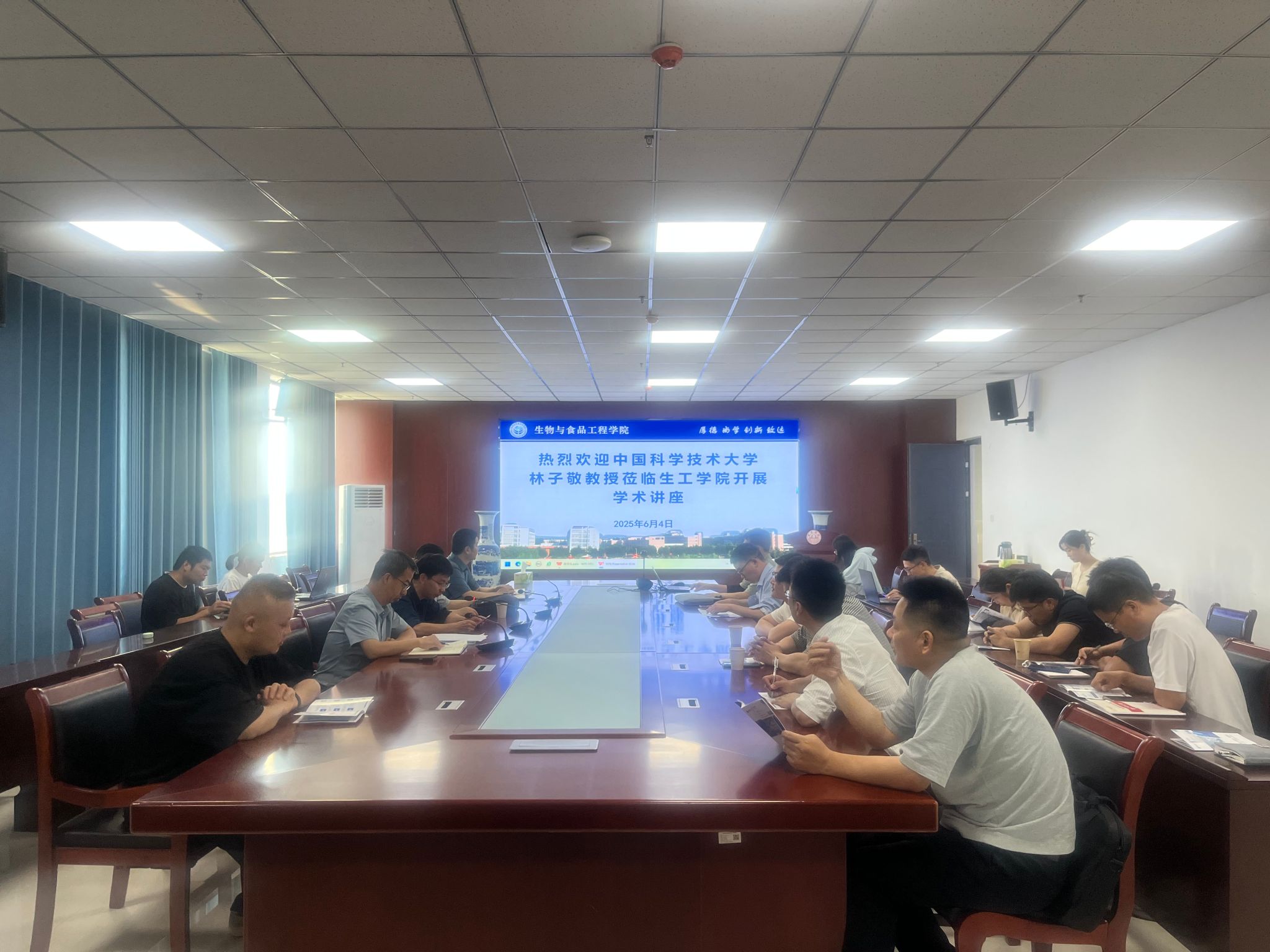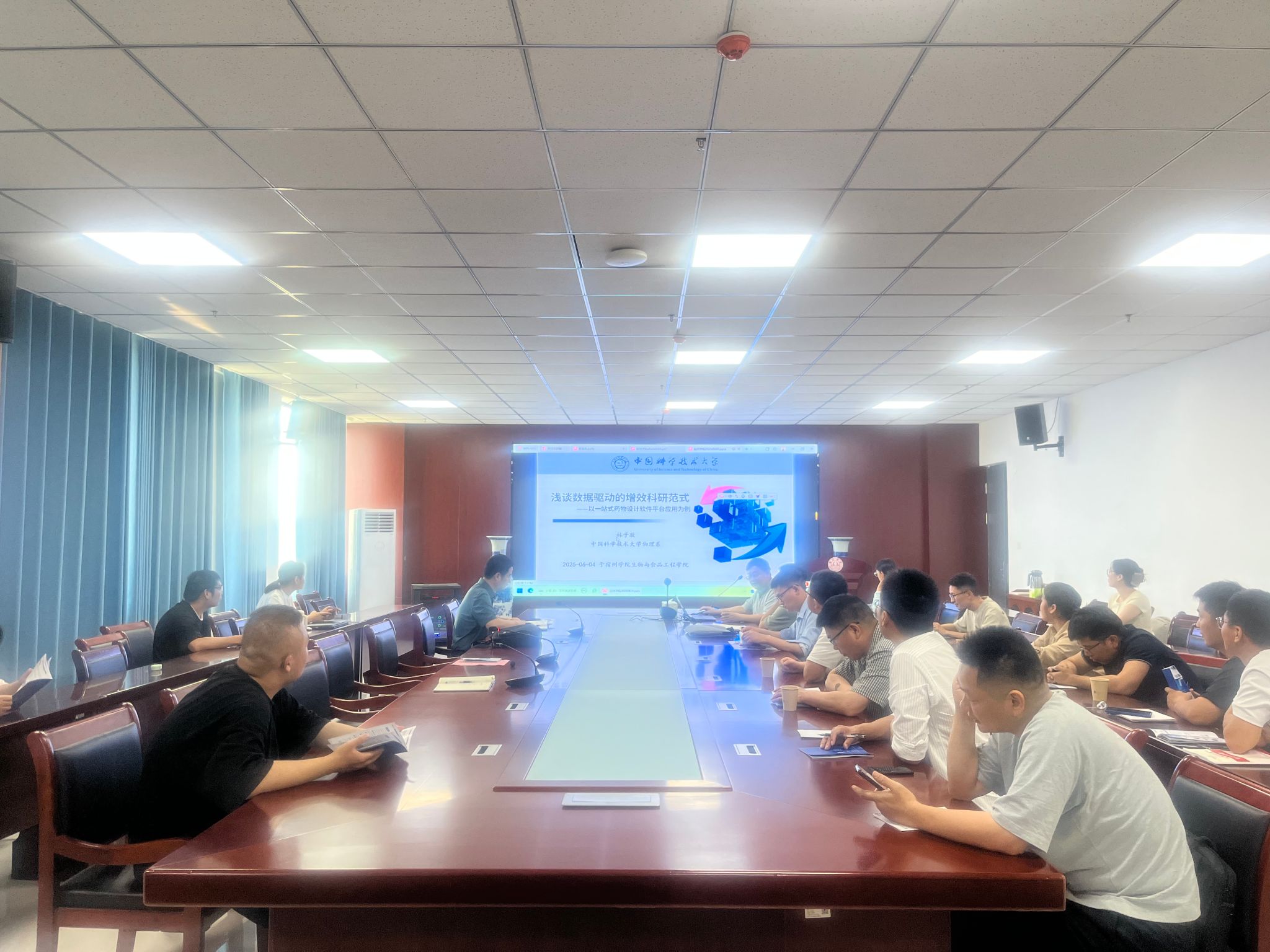 2025年6月4日,应生物与食品工程学院、信息工程学院邀请,中国科学技术大学林子敬教授在生工学院会议室向师生作题为“浅谈数据驱动的增效科研范式——以一站式药物设计软件平台应用为例”的学术报告。讲座由生物与食品工程学院院长张兴桃主持,生工学院和信工学院相关研究方向的教师参加。