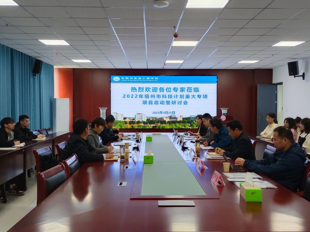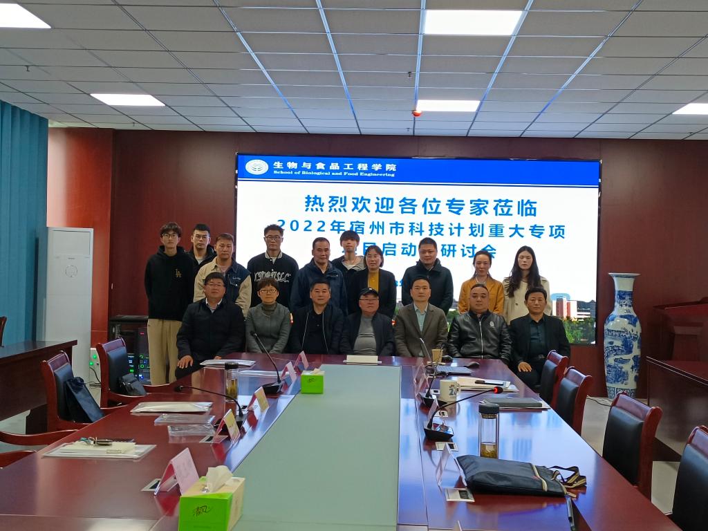 2023年4月25日下午,生物与食品工程学院在实训楼A1105召开“宿州市砂姜黑土区农田大面积均衡增产关键技术研究与集成示范(SZKJXM202208)”项目启动会暨研讨会。项目承担单位宿州学院生物与食品工程学院院长张兴桃、科研副院长翟科峰、项目主持人钱玉梅博士,项目合作单位安徽农业大学王擎运博士、安徽中元化肥股份有限公司总工程师刘统华、宿州市埇桥区现代农业技术合作推广服务中心副站长丁文金博士参加了会议。会议邀请到安徽农业大学周桃华副教授,安徽华成种业农科院闫启云院长,宿州市农科院苗青松副院长,宿州市农科院小麦一所张玉坤所长,宿州市埇桥区农业农村局土肥站孙海龙站长作为专家出席会议。