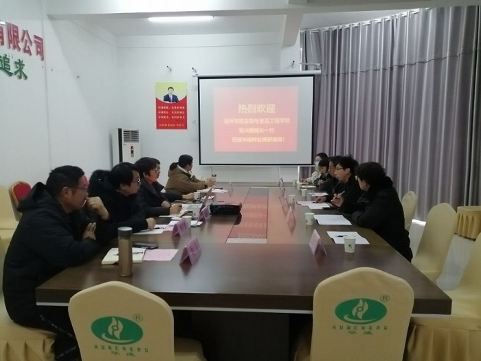 为深化校地合作,落实“4510”校地联合科创行动,2022年1月10日下午,生物与食品工程学院院长张兴桃、副院长王海潮带领学院农学博士到宿州华成种业公司进行校地合作洽谈。