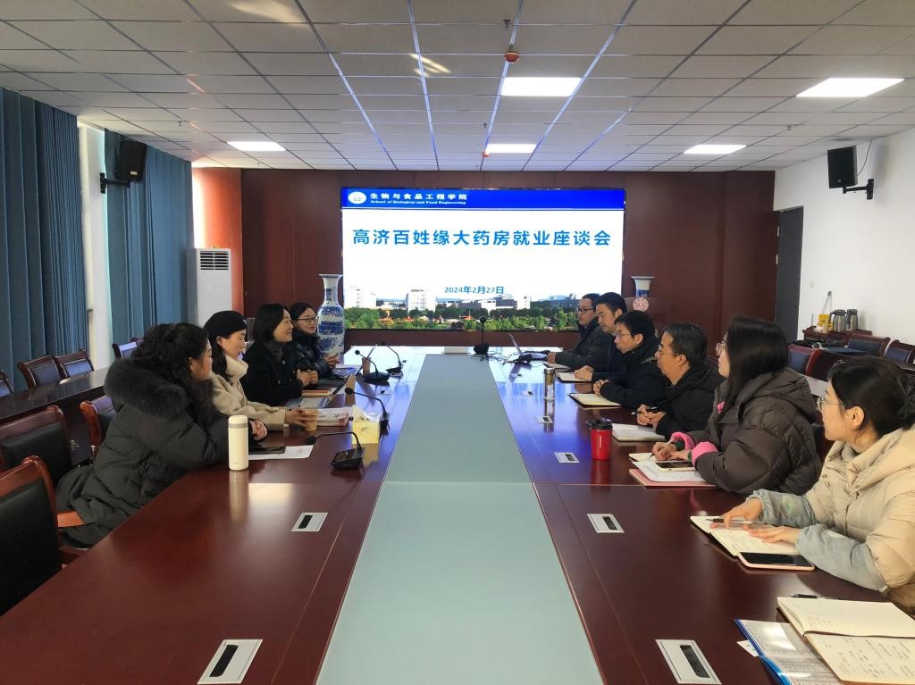 为进一步强化党建引领,推动样板支部的建设优势转化为育人优势,稳步推进2024届毕业生就业工作,2024年2月27日上午,生物与药学教研室教师党支部邀请高济百姓缘大药房共同召开了就业座谈会。生工学院就业领导小组全体成员和高济百姓缘大药房总经理周梅团队4人参加会议。