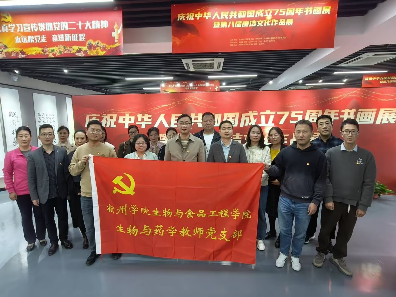 为庆祝中华人民共和国成立75周年,深入贯彻落实中共中央关于加强新时代廉洁文化建设的部署要求,不断巩固深化党纪学习教育成果,加强新时代廉洁文化建设,10月30日,生物与食品工程学院生物与药学教研室教师党支部参观了宿州学院第八届廉洁文化作品展。